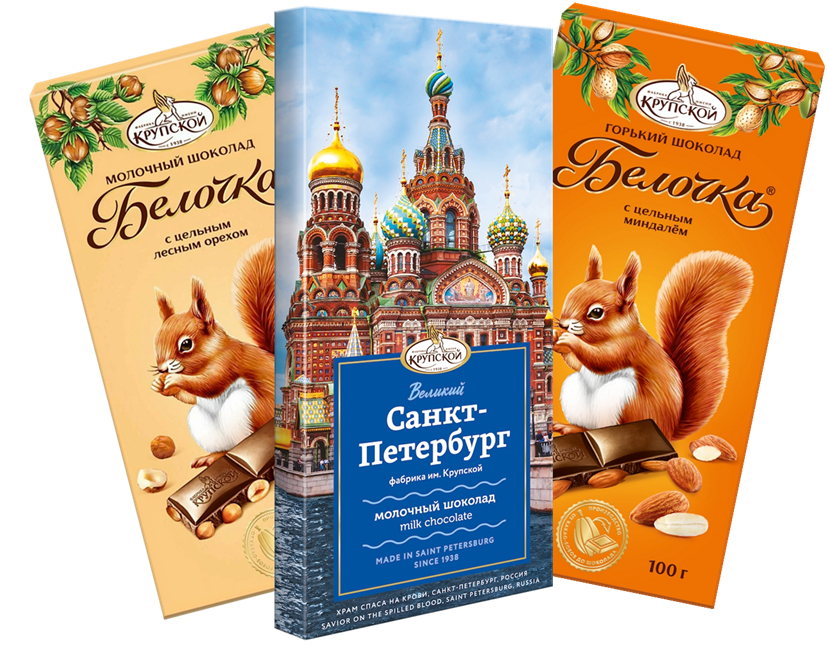 壮麗なるサンクトペテルブルク:砂糖、全粉乳、ココアバター、カカオマス、乳脂肪、乳化剤(大豆レシチン、ポリグリセリン脂肪酸エステル)、香料(バニリン)/Состав1 (Белочка с миндалем): какао-тёртое, сахар, ядра миндаля, масло какао, эмульгаторы (лецитин соевый, эфиры полиглицерина и взаимоэтерифицированных рициноловых кислот), ароматизатор (ванилин).