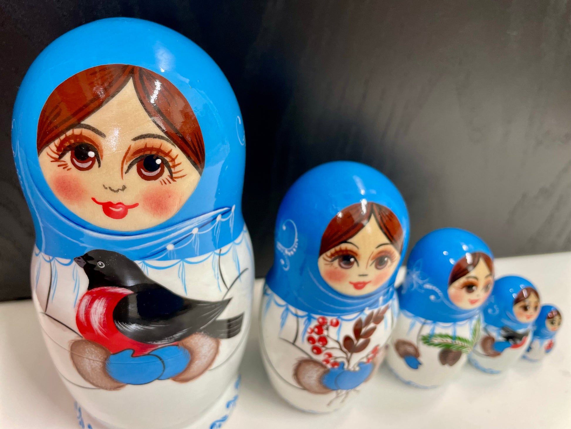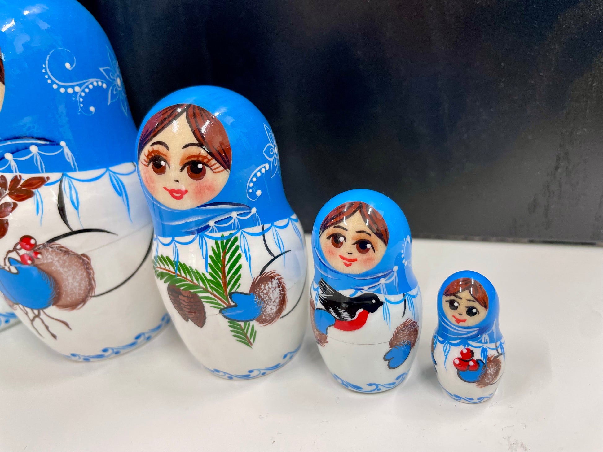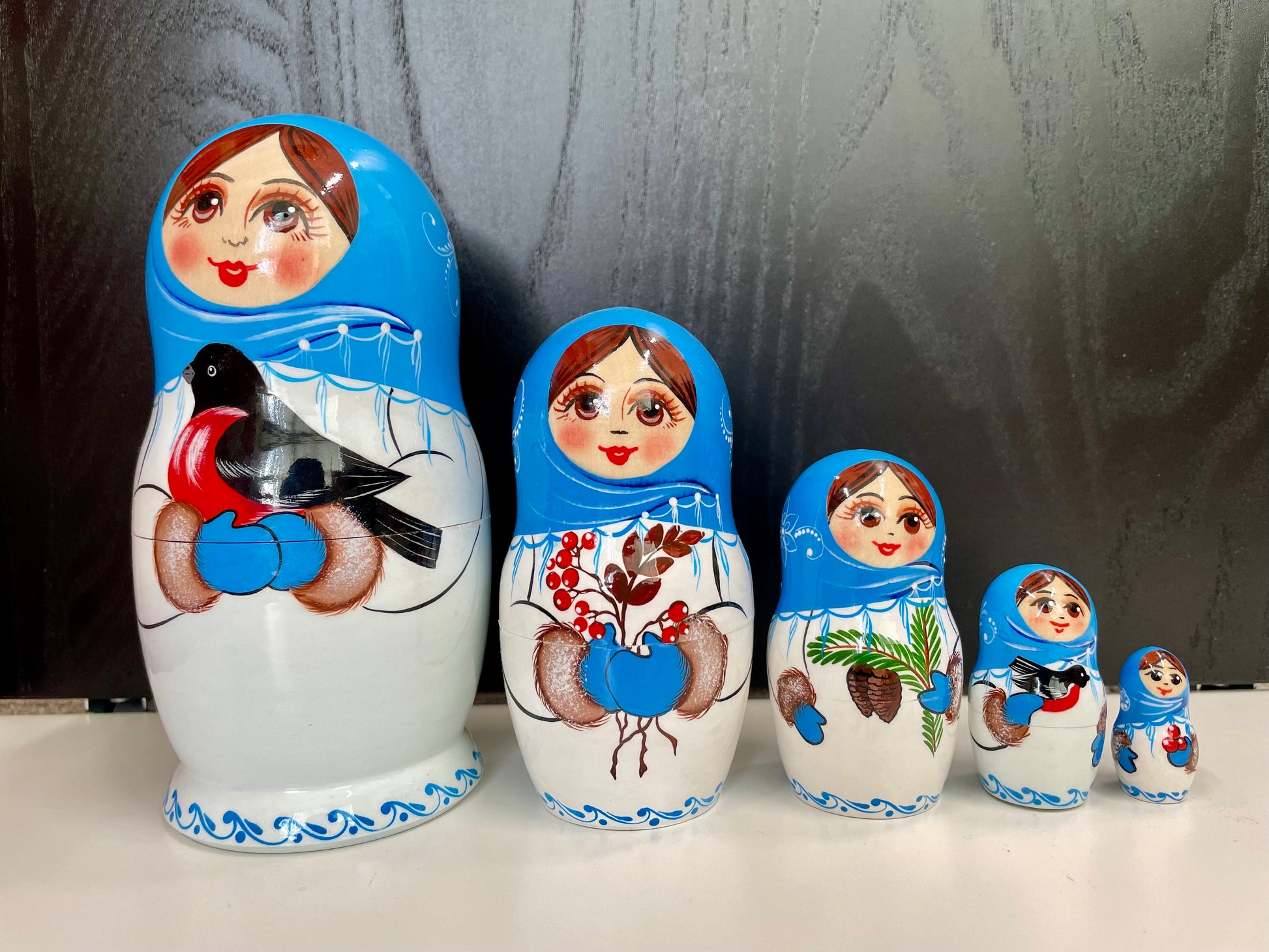 ロシアの伝統工芸品、可愛らしいマトリョーシカ人形の5個セットです。
